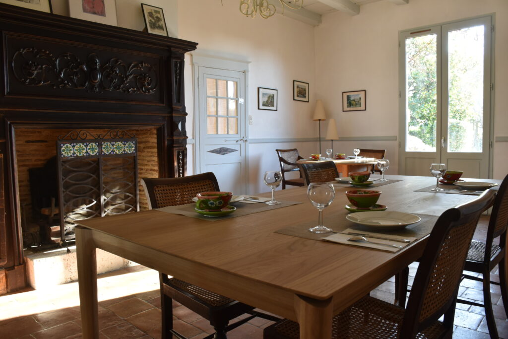 Ses nuances de lin, de vert et de bleu canard, son parquet du XVIIIème siècle et sa cheminée d’angle confèrent à cette chambre d’hôtes près de Bergerac  tout son charme.